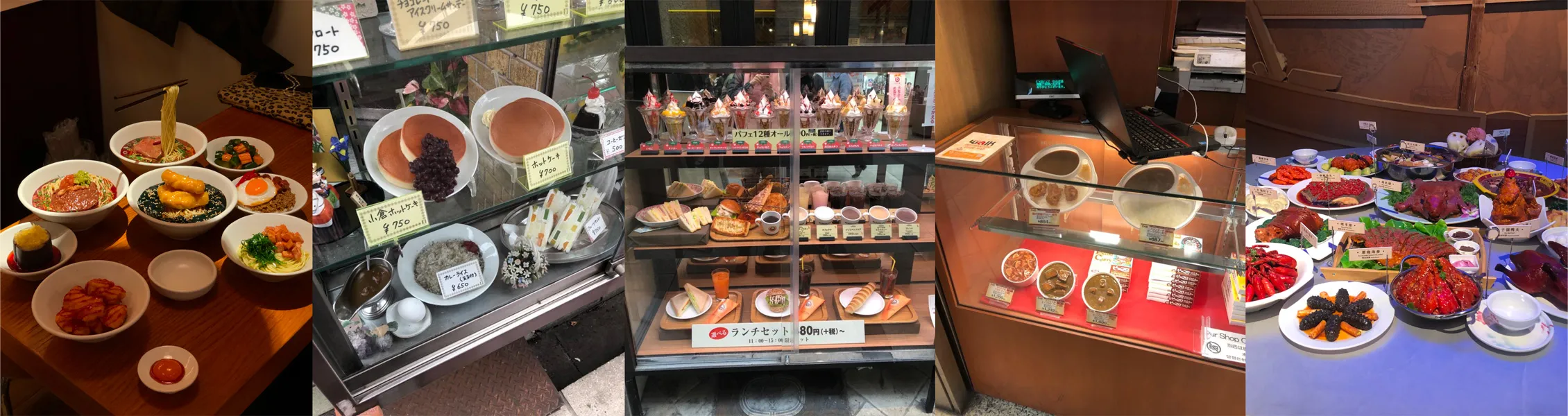 We wanted to create something that would show guests in our new neighbourhood what our food looked like in a very straightforward but BAO way - enter fake food. The usual process of making fake food requires using the actual dish to create a mould, but we could not ship our food to Japan, so we made a lengthy document with reference photos and measurements (down to the size of each cucumber slice) of the dishes.